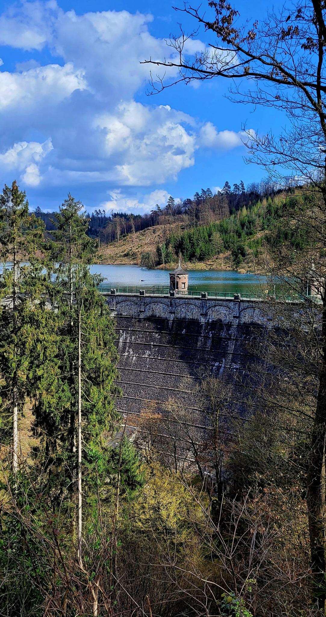 Von hier hat man einen tollen Blick auf die Staumauer der Sengbachtalsperre
